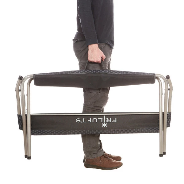 Das schöne an dieser Bank ist neben dem Komfort auch das Packmaß. Sitzfläche und Rückenlehne nehmen zusammen gerade einmal 9 cm Tiefe ein. So kannst du sie prima im Camper unter dem Bett verstauen oder flach in den Kofferraum legen. Ist dein bevorzugter Pausenplatz nicht in unmittelbarer Nähe, kannst du die Bank an den Tragegriffen bequem zum Standort transportieren.