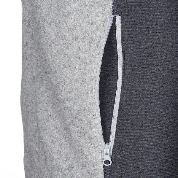 Das Stretchfleece-Gewebe hat eine glatte Außenseite und eine aufgebürstete Innenseite, die kuschelig weich auf der Haut liegt. Das Material ist stark elastisch und sorgt so für ein Maximum an Bewegungsfreiheit. Außerdem überzeugt die Jacke mit einem sehr guten Feuchtigkeitsmanagement: Gerätst du zum Beispiel auf herausfordernden Wanderwegen ins Schwitzen, absorbiert das Material die entstehende Feuchtigkeit und leitet sie schnell nach außen ab. So fühlt sich die Jacke schnell wieder angenehm trocken auf der Haut an. Die flauschige Frontseite mit hohem Wollanteil sorgt für eine zusätzliche Portion Wärme an den kälteempfindlichen Regionen. Und sie verleiht der Fleecejacke eine besonders schöne Optik.