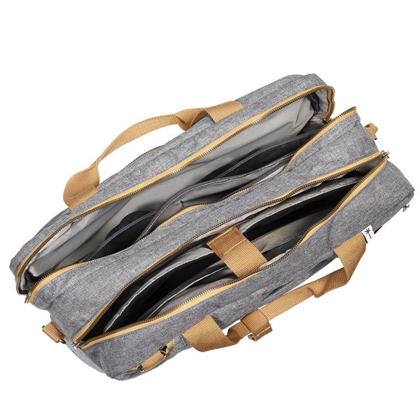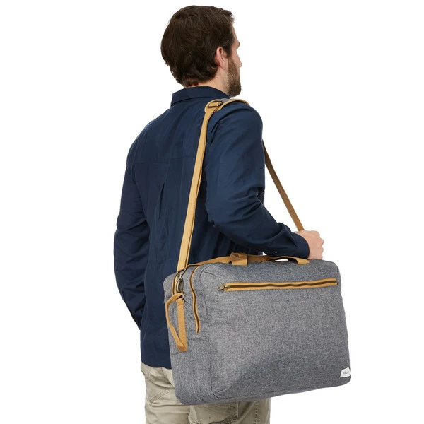 Passe die Trageriemen deiner Tasche flexibel an den Einsatz an. Auf dem Rad unterwegs? Verwandele die Tasche in einen Rucksack! Die bequem gepolsterten, abnehmbaren Rucksackgurte sind in einem RV-Fach auf der Rückseite der Tasche unsichtbar verstaut und lassen sich einfach in die vorhandenen Ösen einhängen. Mit der Bahn auf dem Weg zum Businesstermin? Nehme die Tasche ganz lässig an den großen Henkeln in die Hand! Die Henkel sind aus weichem Gurtband mit natürlichem Tragegefühl gearbeitet und lassen sich mit einem Druckknopf verschließen. Du benötigst einen klassischen Messengerbag? Nutze den bequemen, abnehmbaren Schultergurt und hänge dir die Tasche über die Schulter. Auf dem Weg zum Flughafen? Befestige die Tasche mittels Durchsteckschlaufe auf dem Teleskopgriff deines Rollkoffers.